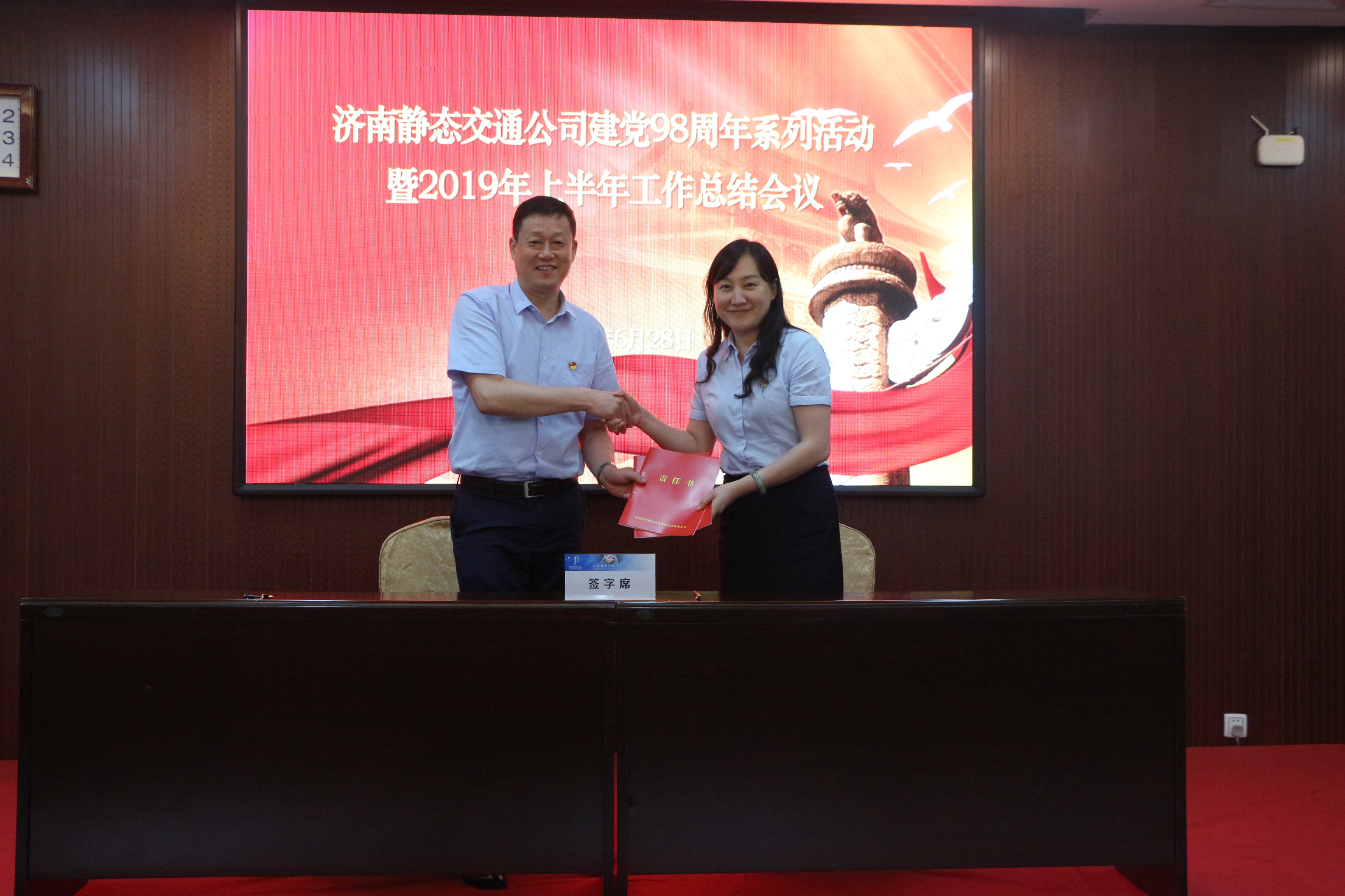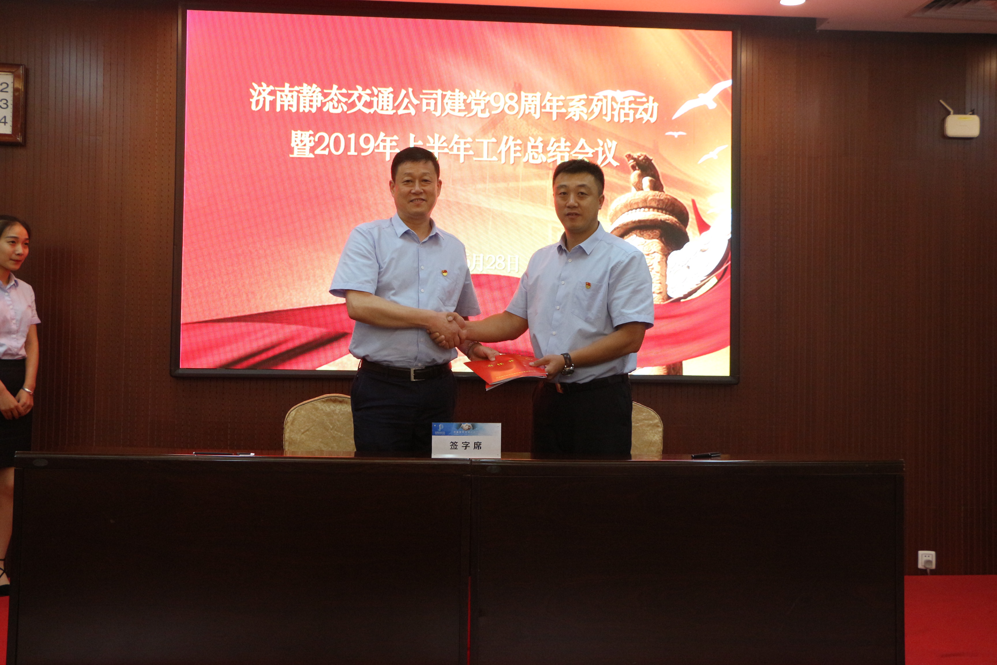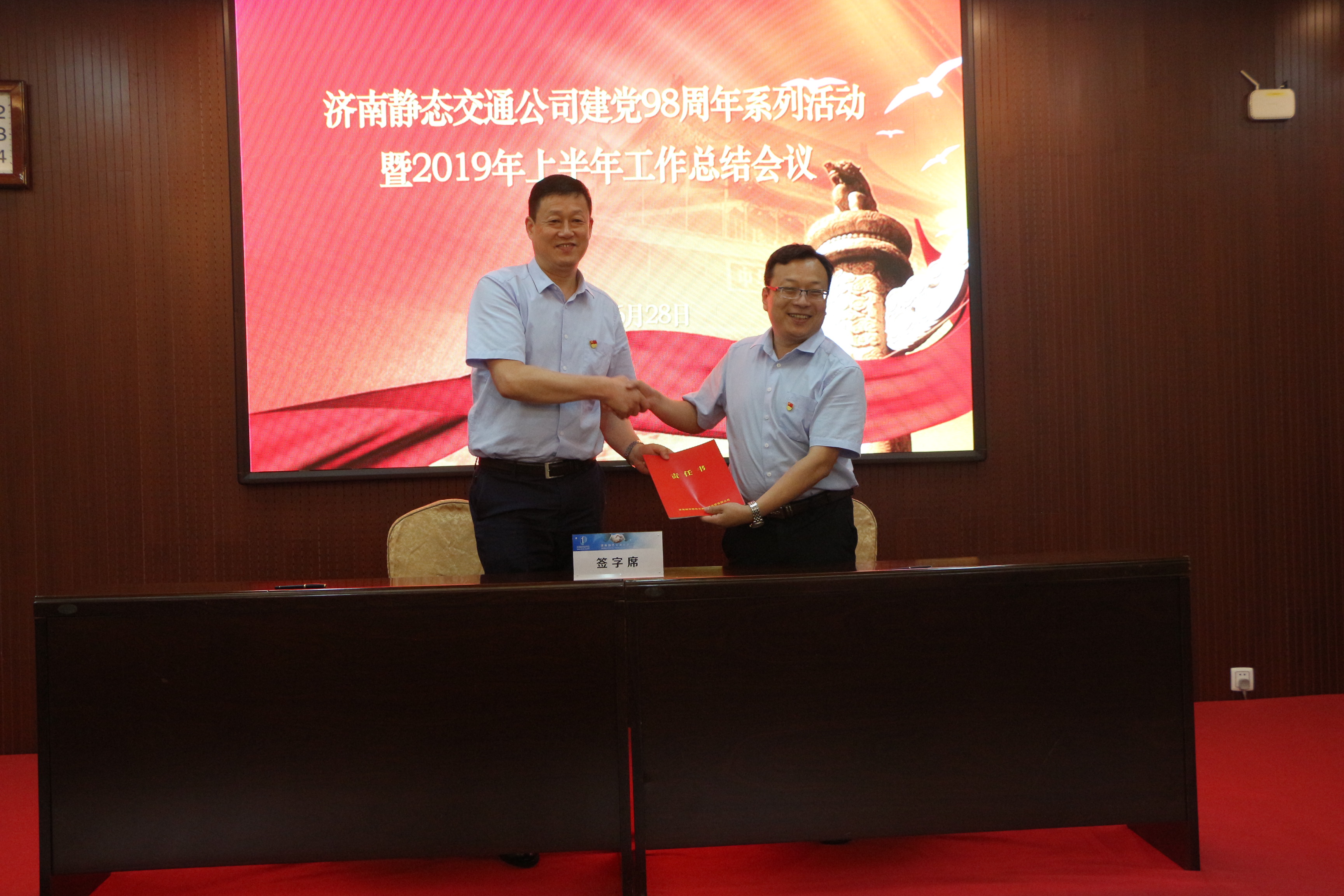 6月30日下午,濟南靜態(tài)交通集團與歷城交警大隊在“七一”前夕,隆重舉行了“牢記初心使命、共譜警企新篇”黨建共建簽約啟動暨共建基地揭牌儀式。此次活動是濟南靜態(tài)交通集團與歷城交警大隊圍繞“立足民生,為群眾解決停車難、停車亂問題”的目的,創(chuàng)新黨建工作形式和載體的一次全新嘗試,是全面貫徹落實“不忘初心、牢記使命”主題教育活動精神的全新舉措,也是雙方以黨建引領(lǐng)促進拓寬交流渠道、深化警企合作,實現(xiàn)共融、共