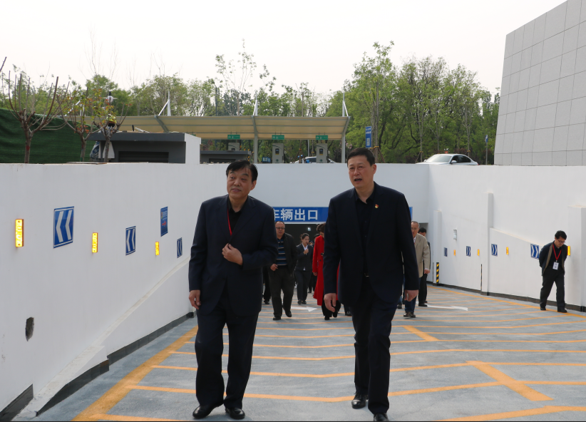 ▲領(lǐng)導(dǎo)一行參觀舜耕智能停車場(chǎng)