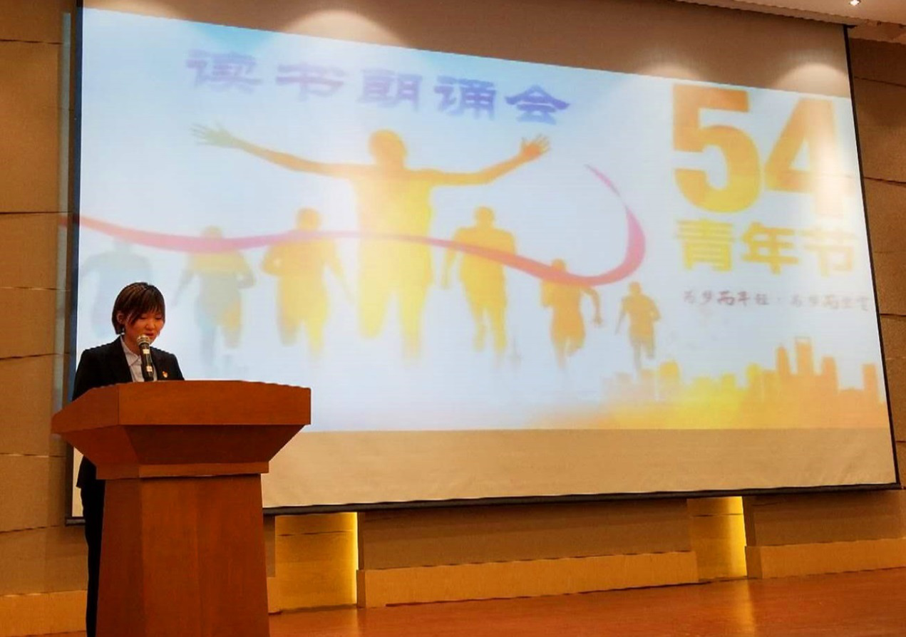 朗誦會以李潔《認真得青春》開始,青年職工宋雙《放飛青春夢想、書寫時代華章》,以學(xué)習(xí)宣傳貫徹十九大精神為主題,道出了新時代青年應(yīng)如何實現(xiàn)夢想、書寫華章。劉爽的《五四暢想》,帶我們回味了那段光榮的歷史,重溫?zé)嵫嗄甑膼蹏?。張倍豪的《?dāng)呼吸化為空氣》使我們領(lǐng)略了人生真諦,讓我們無不為之動容。