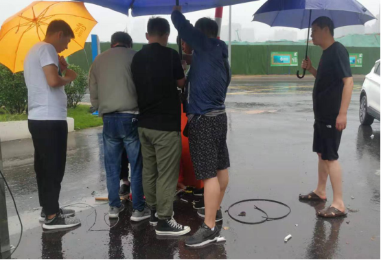 ? ? ? ? 此時(shí)“利奇馬”臺(tái)風(fēng)已經(jīng)開始影響濟(jì)南,而停車場的信息化工程,需要強(qiáng)電、弱電、手機(jī)信號(hào)優(yōu)化等一系列施工改造,以及視頻設(shè)備安裝為了確保出入口附近地面溝槽的安全,工作人員專門找來5把太陽傘遮擋雨水。然而大風(fēng)襲來,太陽傘瞬間被撕裂……